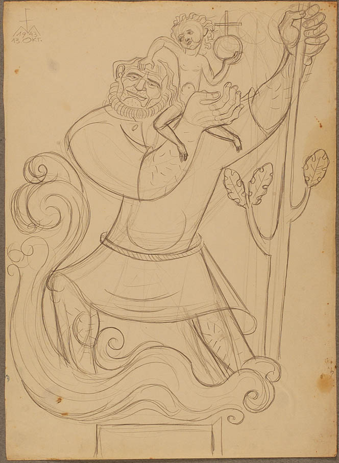 Bild 2. St. Christophorus, Entwurf für Skulptur auf einem Podest, 13.10.1943