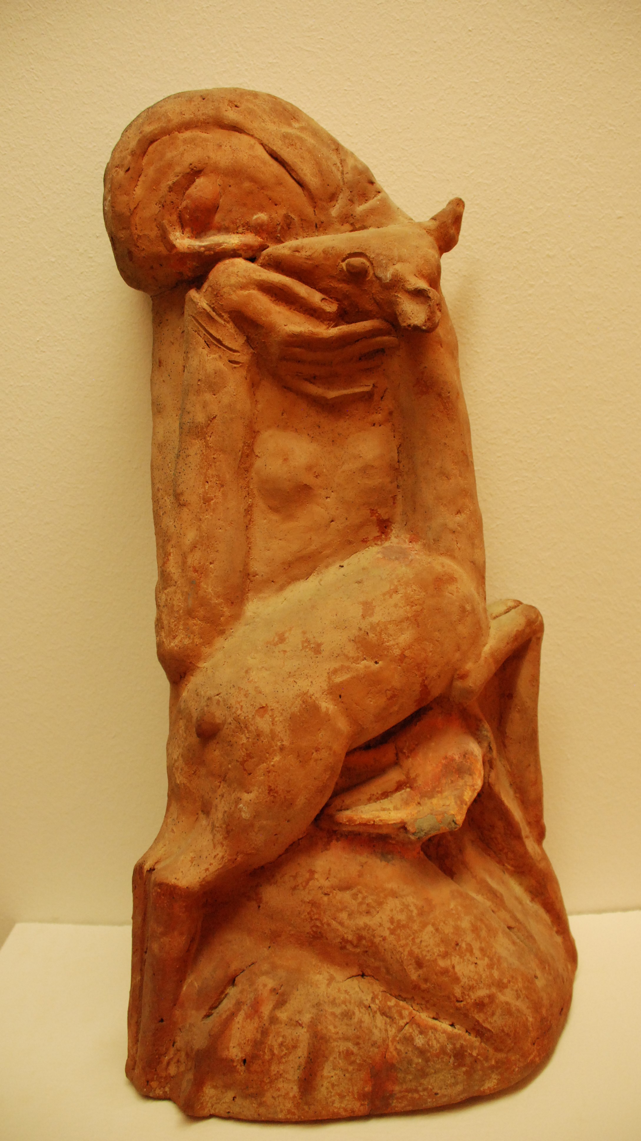 Frisch restauriert präsentiert sich das "Mädchen mit Reh", eine Schenkung aus dem Jahr 2024, mit der Frau Annette Seiler aus Veitsbronn das Andenken ihres verstorbenen Mannes, Herrn Dipl. Ing. Jürgen Seiler, ehrt. Als eine Terrakotta-Skulptur aus den frühen 1930er Jahren ist sie im Oeuvre des Bildhauers Felix Müller von besonderem Wert, da Kriegsverluste die frühen plastischen Arbeiten um manchen Schatz beraubt haben.
