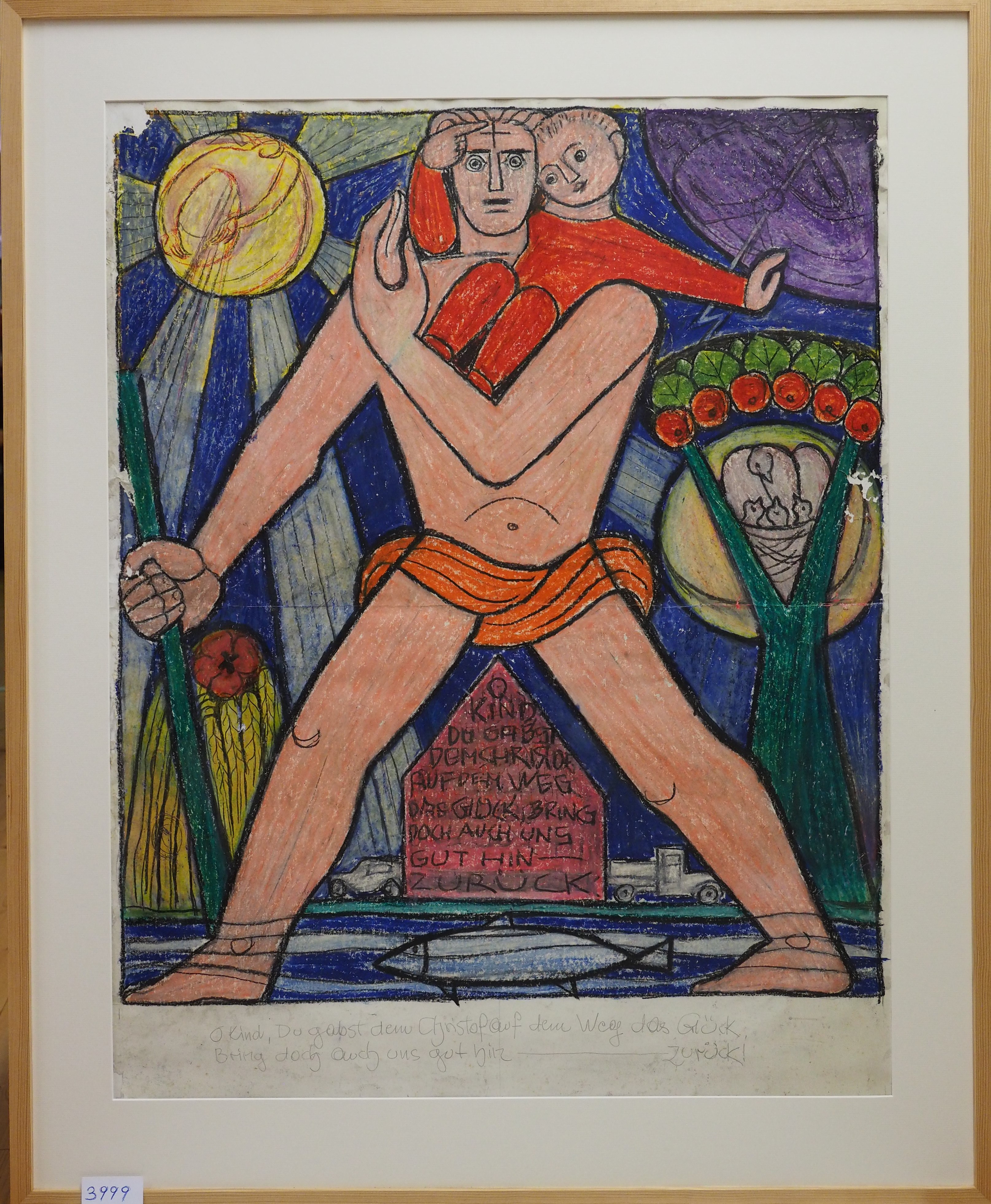 Bild 1. St. Christophorus als Patron der Reisenden u. Autofahrer, Entwurf f. Bildfenster, nach 1950